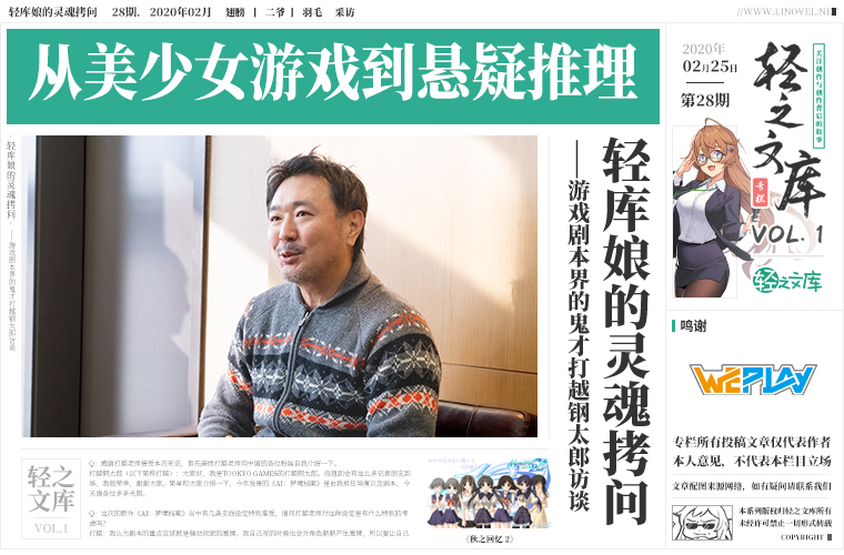 【授权转载——轻之文库】【轻库娘的灵魂拷问】从美少女游戏到悬疑推理——游戏剧本界的鬼才打越钢太郎访谈