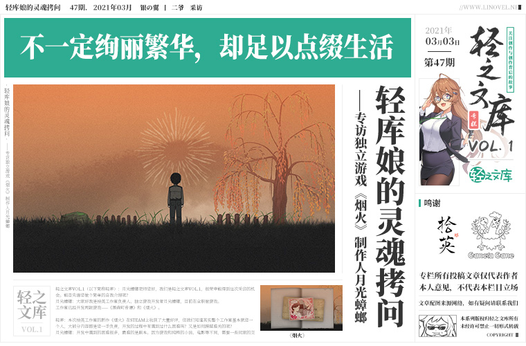 【授权转载——轻之文库】【轻库娘的灵魂拷问】专访独立游戏《烟火》制作人月光蟑螂